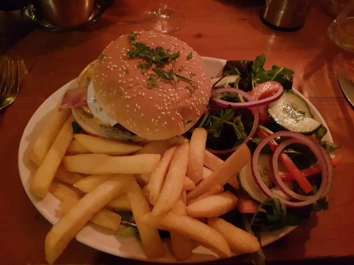 For those on a plant-based diet, there are plenty of vegetarian dishes to choose from, like the Vegan Sunday Roast or the Vegan Cheese and Mushroom Burger. Additionally, meat lovers can indulge in hearty meals such as the Steak and Scampi or the Schnitzel, each perfectly prepared and served with fresh ingredients.